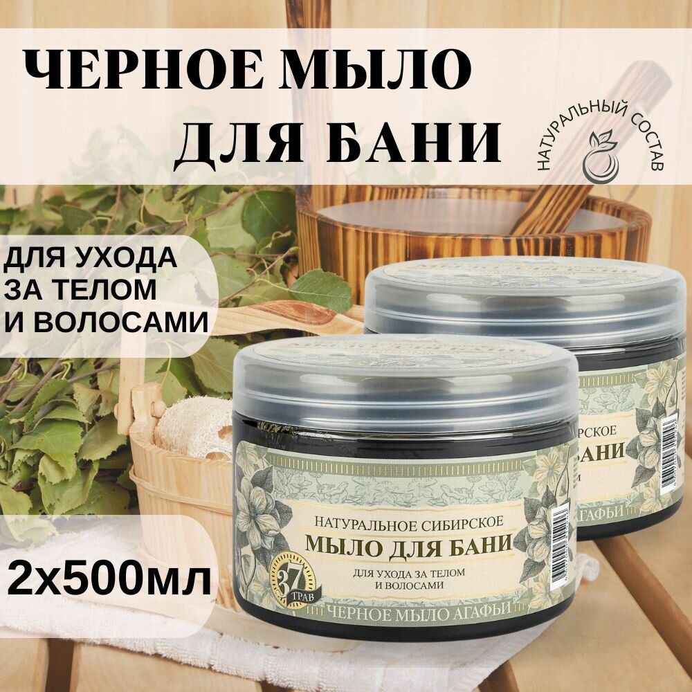 Черное мыло Агафьи для бани, 500 мл, 2 шт