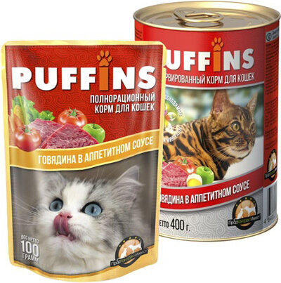 СохранитьВлажный корм "Puffins" для кошек, сочные кусочки говядины в соусе, 100 г интересное: