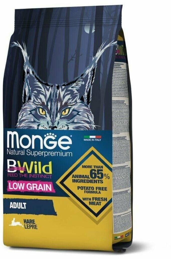 MONGE BWILD LOW GRAIN CAT HARE низкозерновой для взрослых кошек с мясом зайца (10 кг)