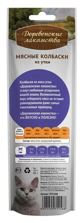 Лакомство Деревенские лакомства Мясные колбаски для кошек из утки 45г 8шт 79711588