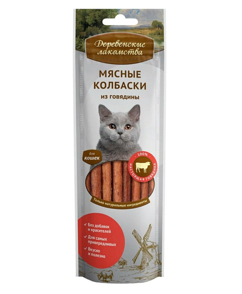 Деревенские лакомства для кошек Мясные колбаски из говядины 45 гр