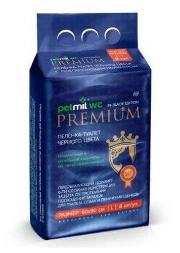 Пеленки Petmil впитывающая одноразовая с суперабсорбентом черная 60*90*8шт / 1 шт