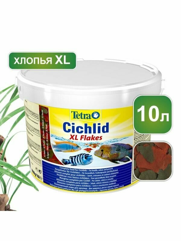 Tetra Cichlid Flakes XL Основной корм для цихлид и крупных рыб, хлопья, 10 л (1,9кг)