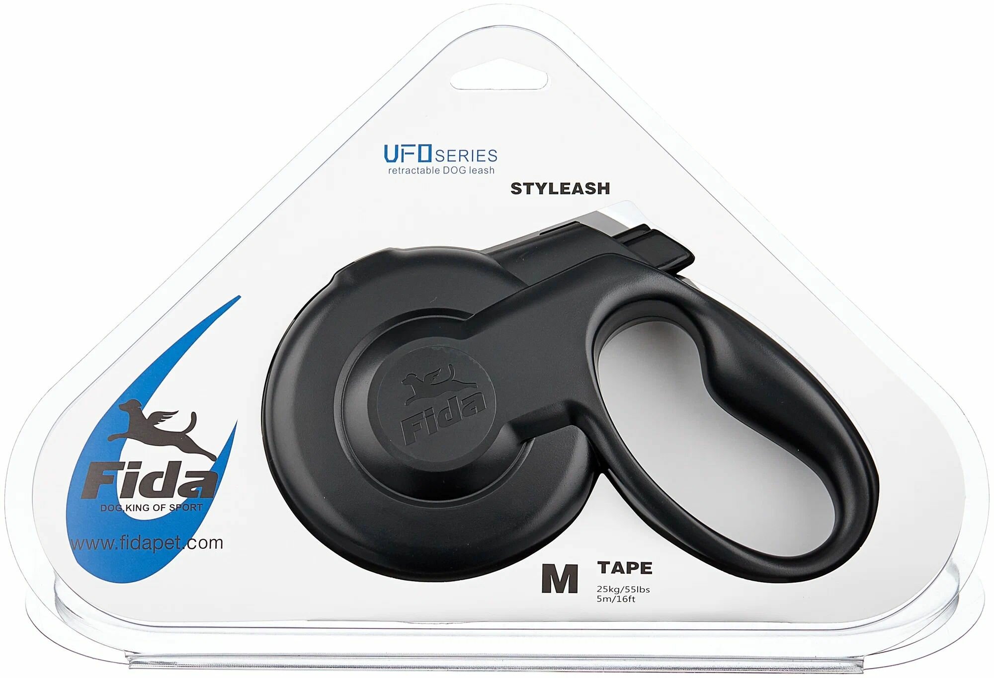 Fida Рулетка для собак средних пород STYLEASH, стильная, с выдвижным шнуром 5 м, до 25 кг, черная
