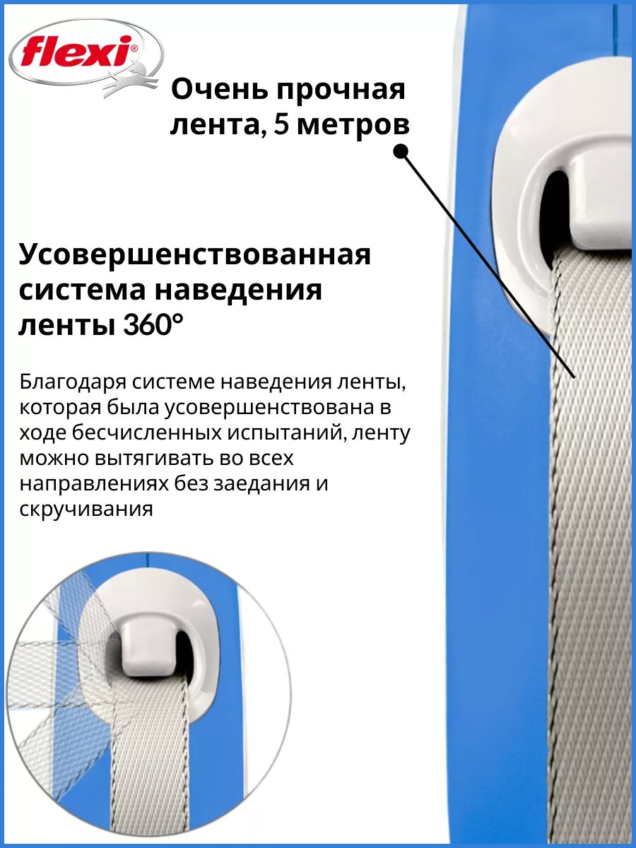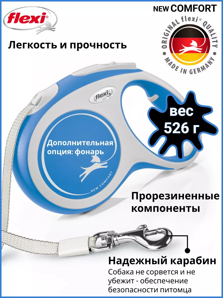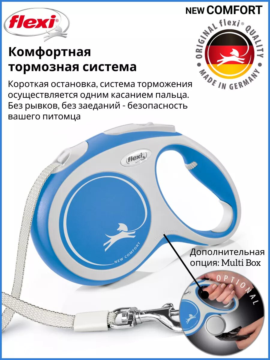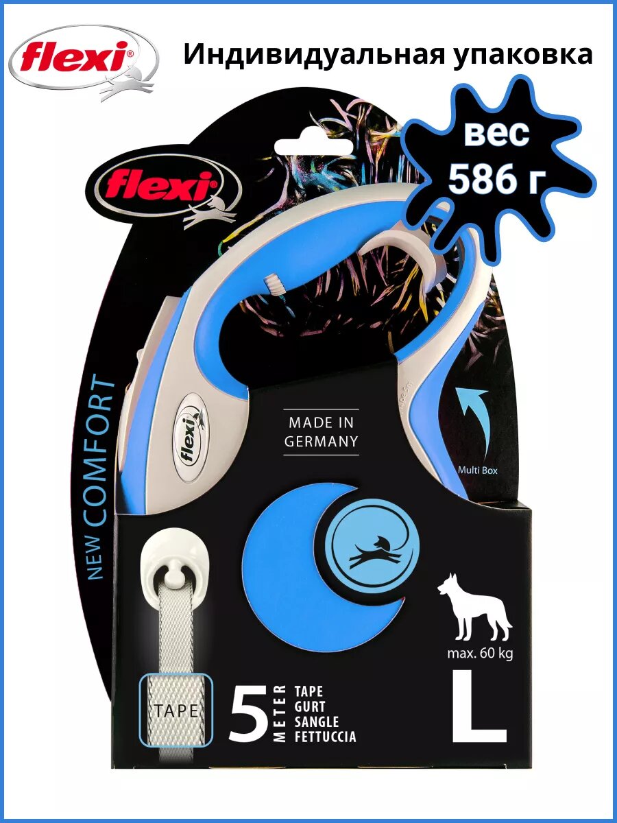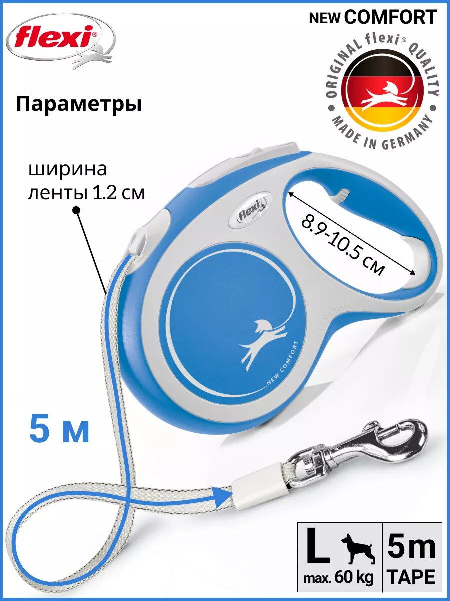 Поводок-рулетка Flexi New Coмfort tape L, 5 м, 60 кг, синий