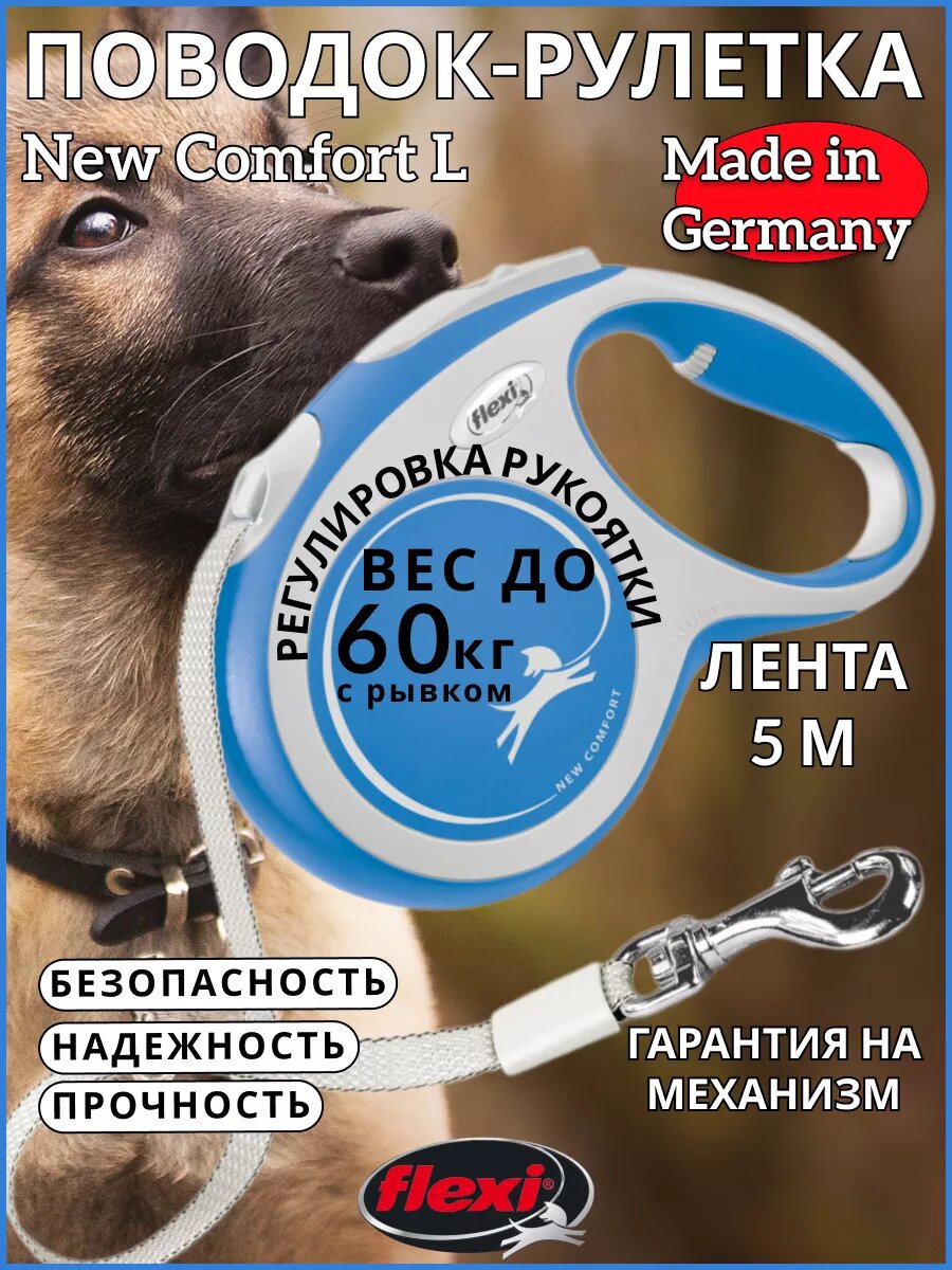 Flexi New Comfort L Tape 5м до 60кг поводок-рулетка ремень, синий