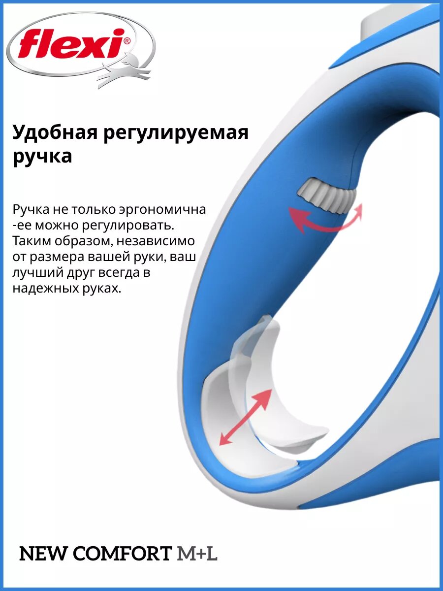 Flexi New Comfort tape L поводок-рулетка для собак, голубая 5 м, до 60 кг