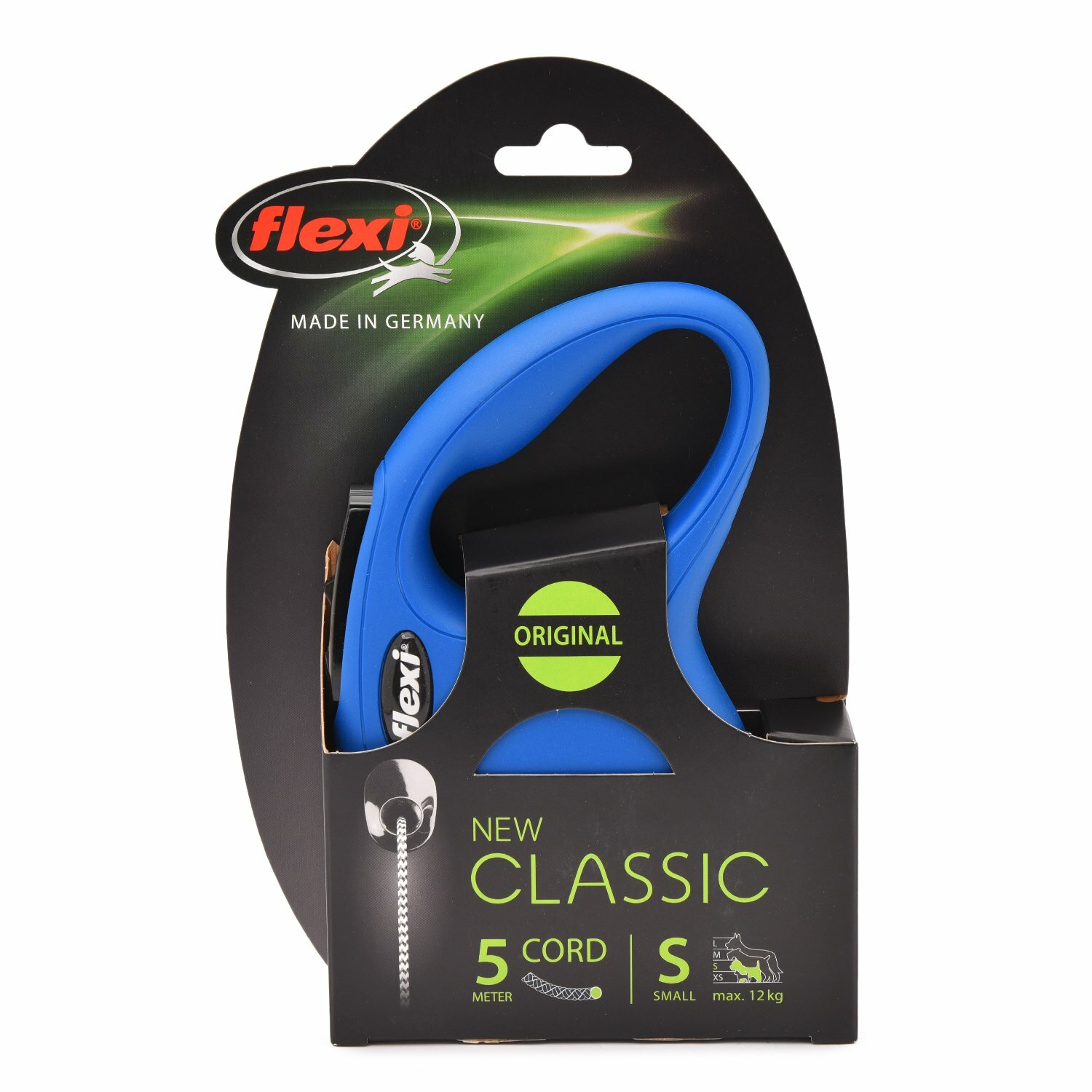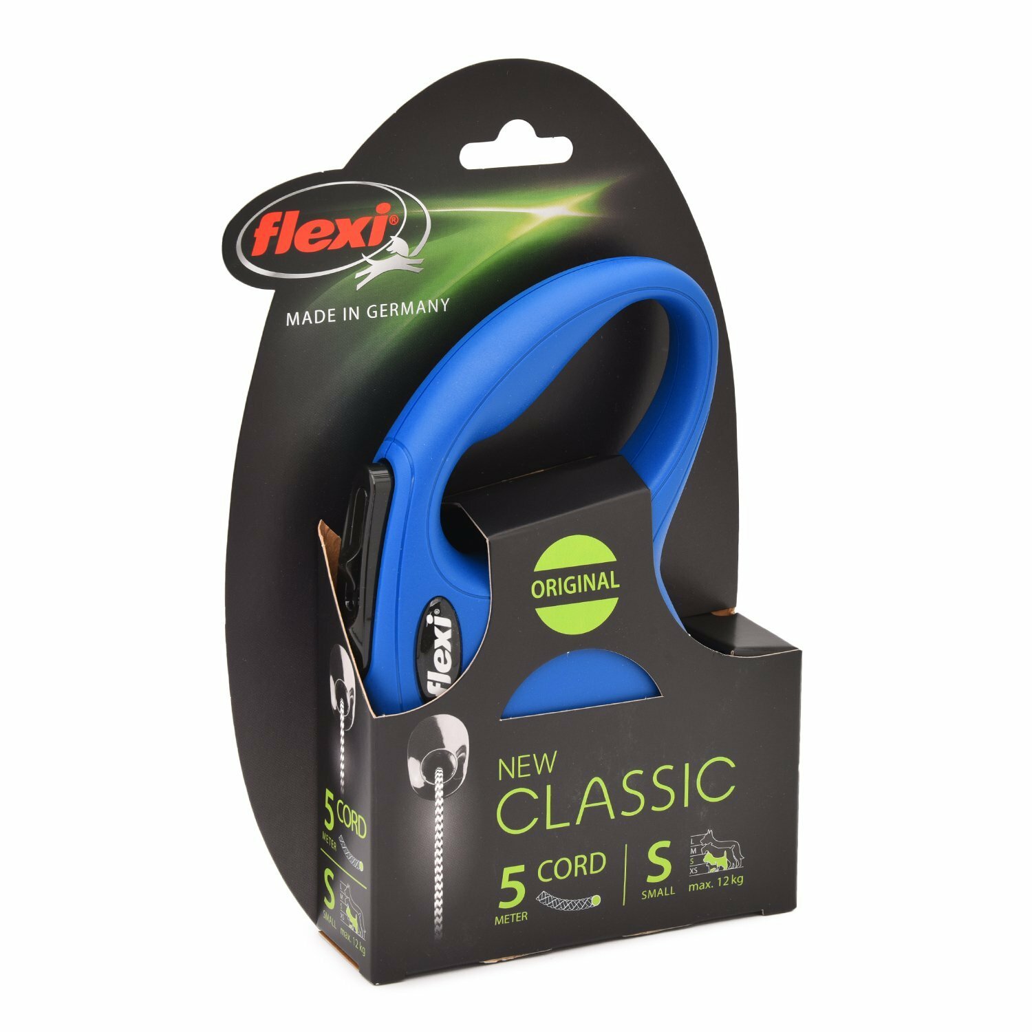 FLEXI NEW CLASSIC CORD – Флекси тросовый поводок-рулетка для животных, 5 м, размер S, синий (1 шт)