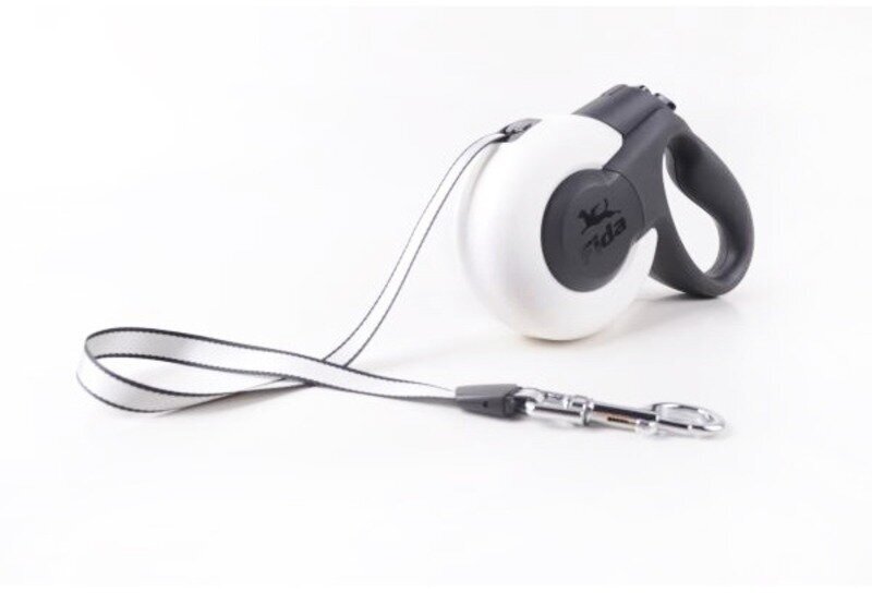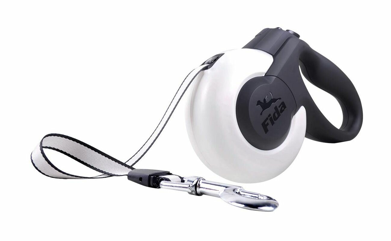 Поводок-рулетка для собак Fida Mars ленточная (L) 5 м белый/черный