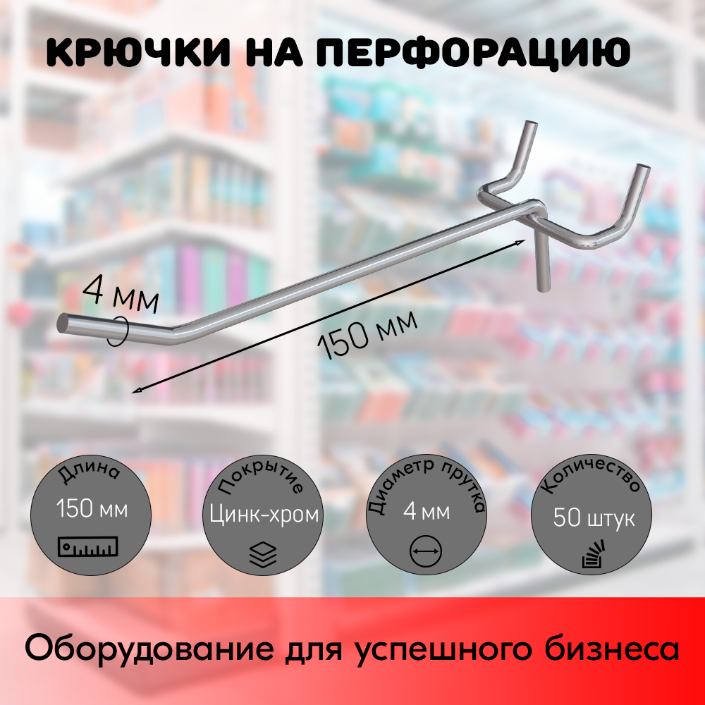 Набор Крючок 150 мм для перфорации одинарный, цинк-хром, шаг 50, диаметр прутка 4 мм - 100 шт интересное: