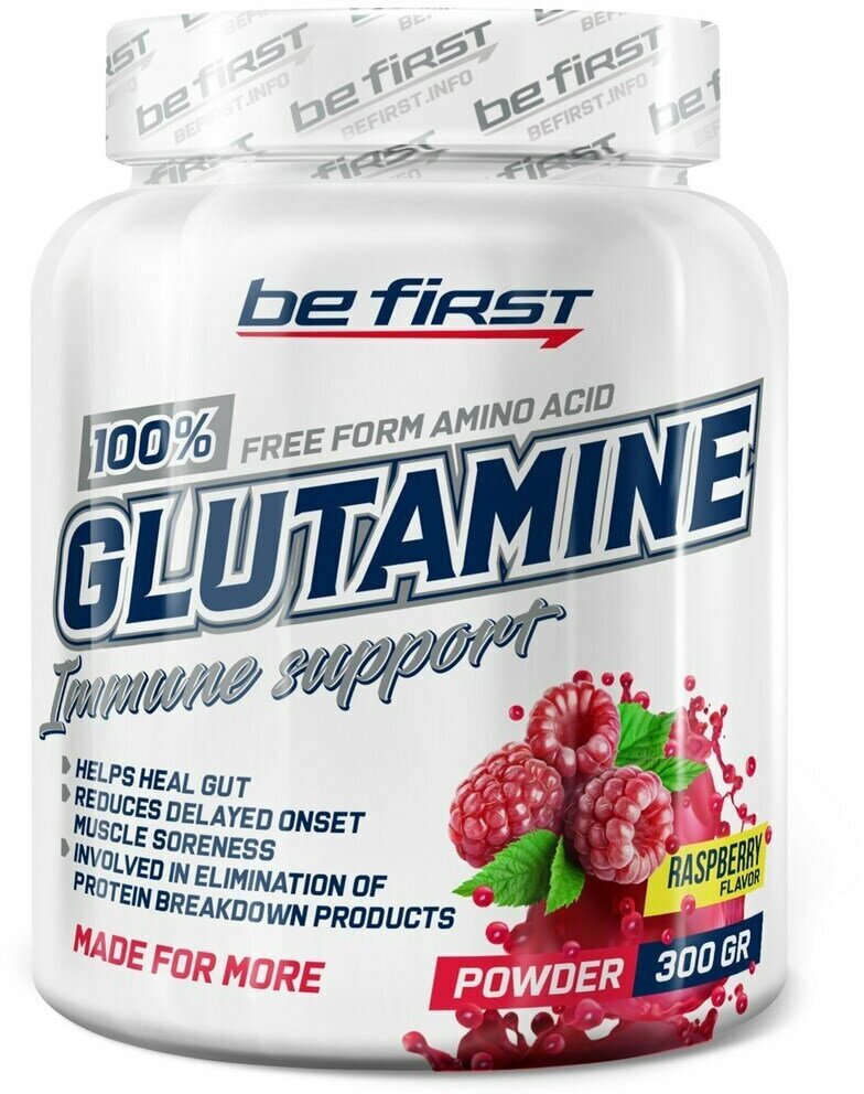 Аминокислота Be First Glutamine Powder, малина, 300 гр.