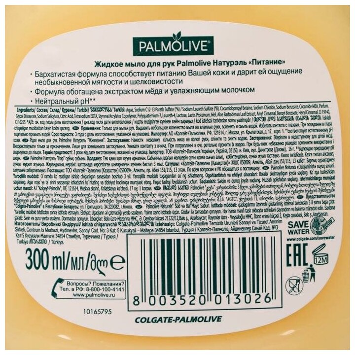 Мыло жидкое PALMOLIVE Натурэль 300мл Питание (Мед и Увлажняющее молочко)