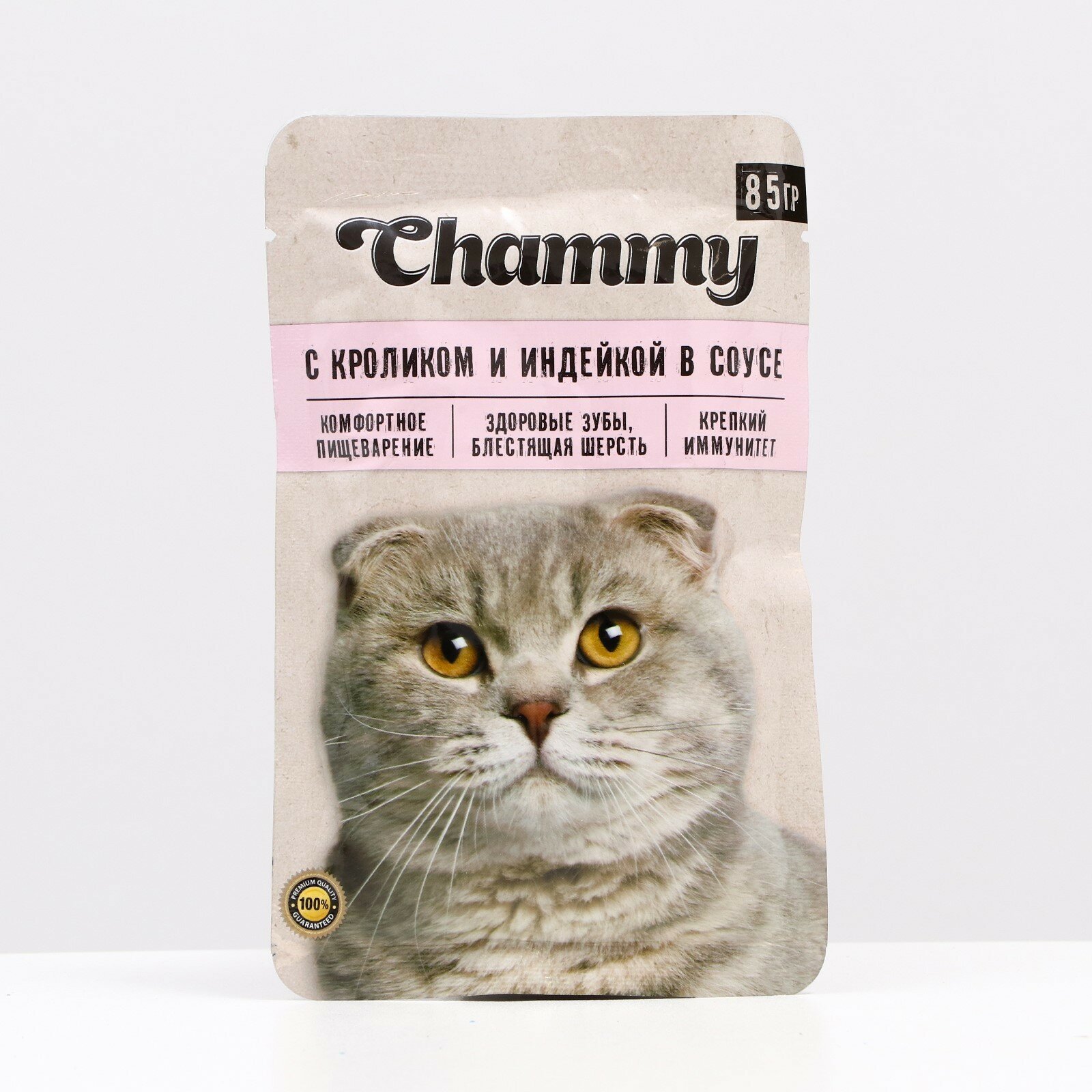 Влажный корм Chammy для кошек, кролик/индейка в соусе, пауч, 85 г