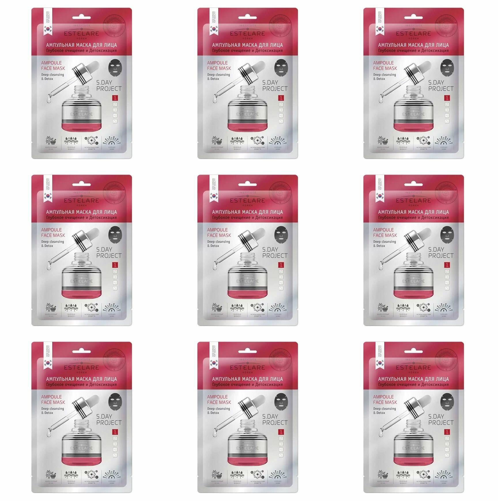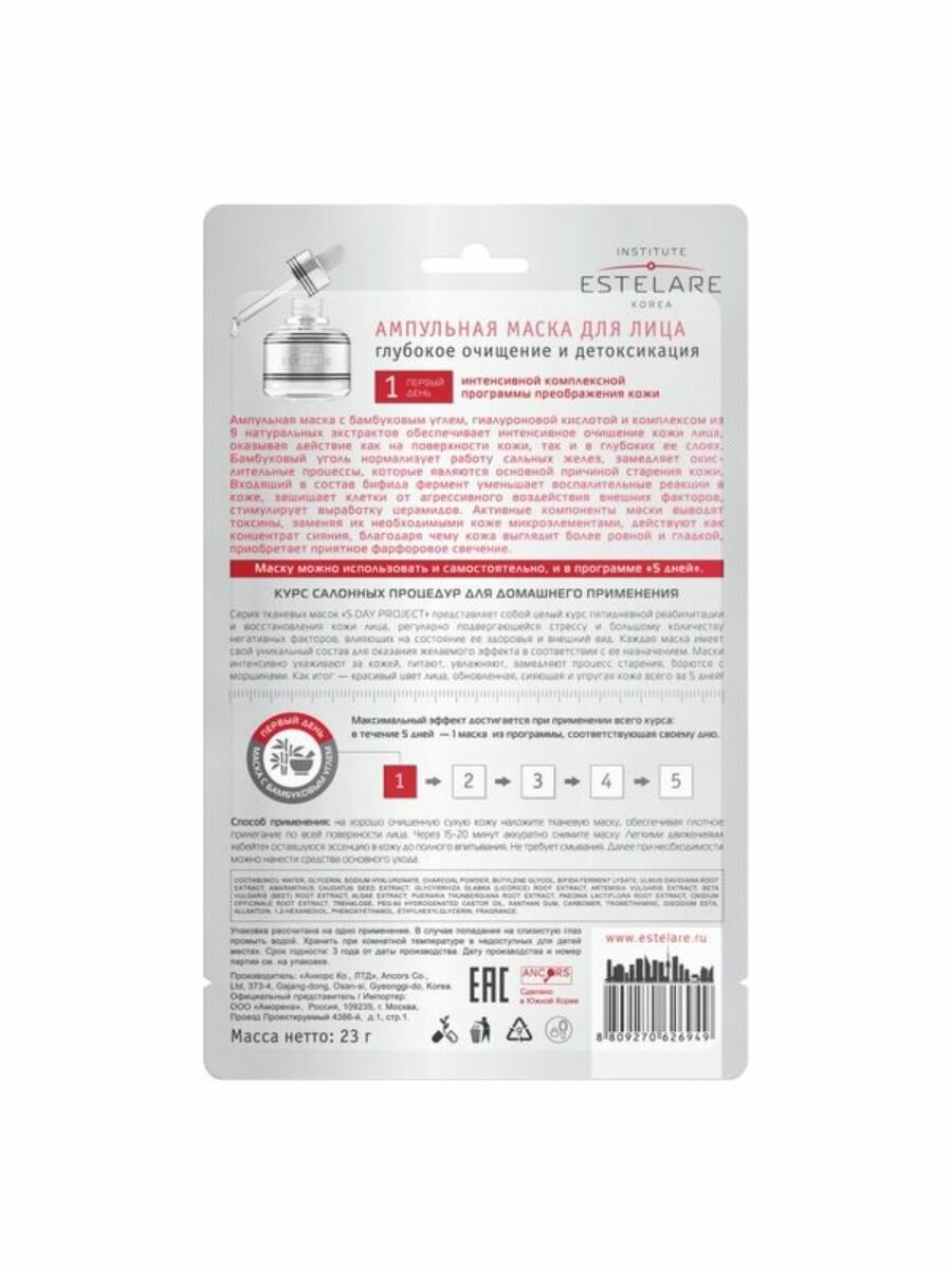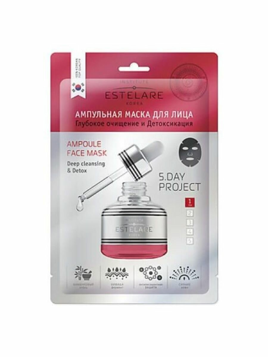 Estelare Ампульная маска (5дней) для лица 1 день "Глубокое очищение и Детоксикация" 23 г.