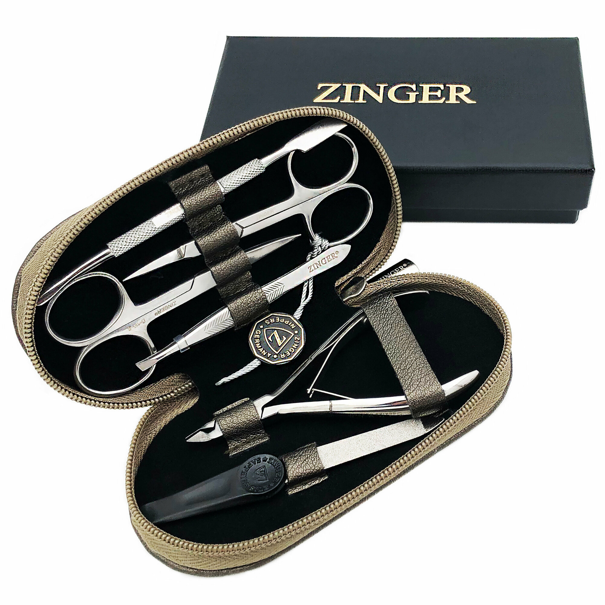 Маникюрный набор Zinger 7104, 6 предметов, серебристый/коричневый лофт