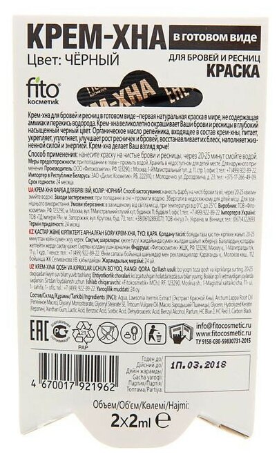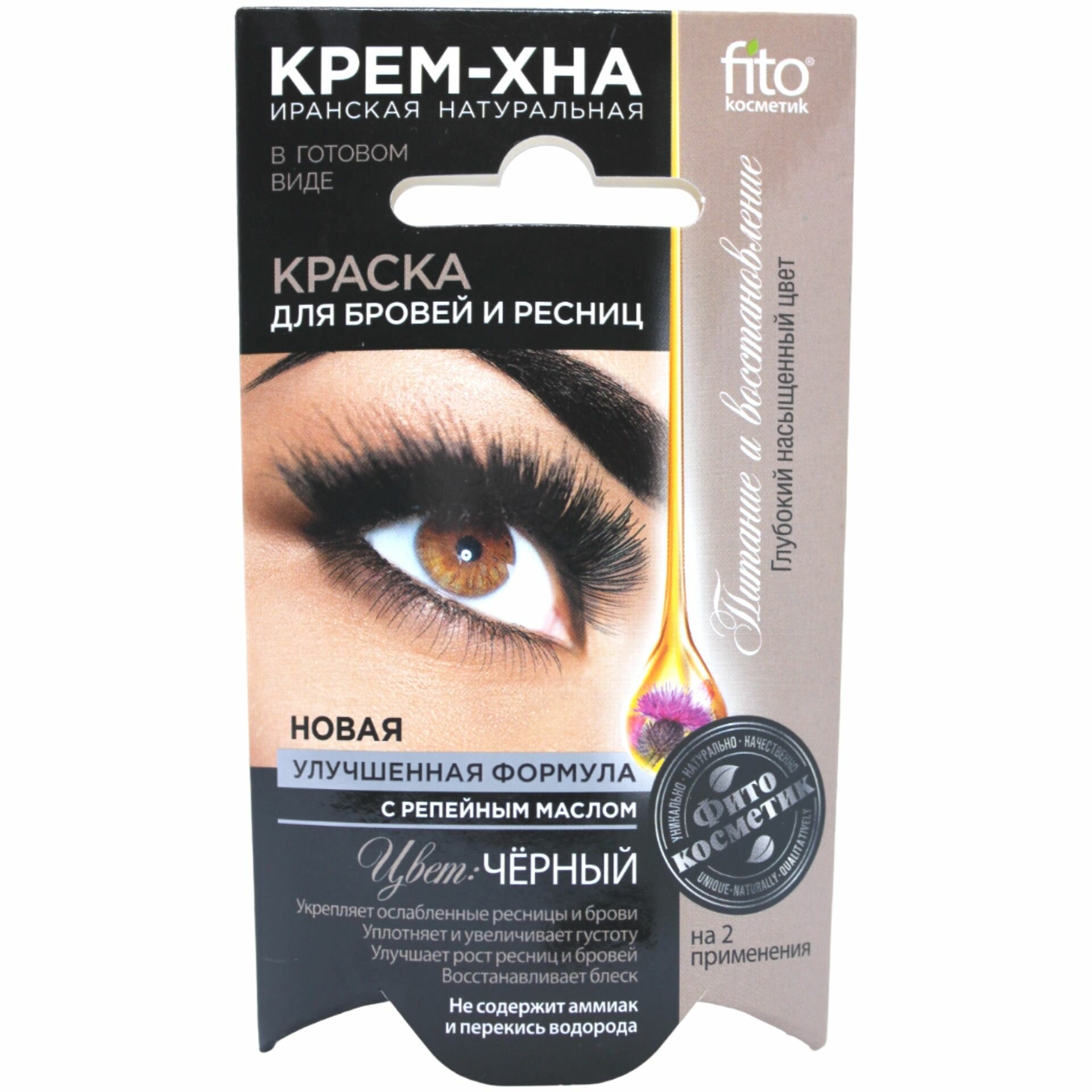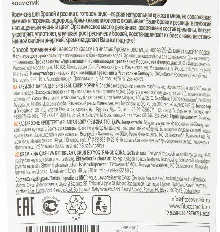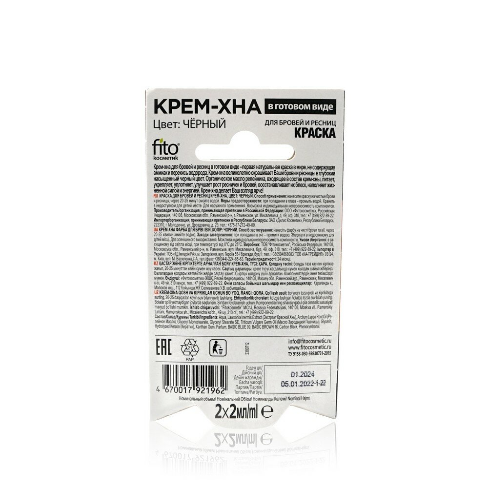Fitoкосметик Краска для бровей и ресниц Крем-хна, цвет черный, на 2 применения, 2 х 2 мл