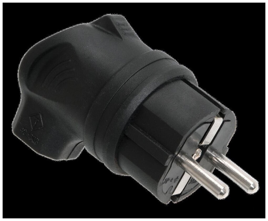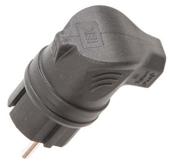 Вилка угловая каучуковая IEK Омега ВБу3-1-0м, с боковым вводом, с заземлением, 16 А, IP44, черная