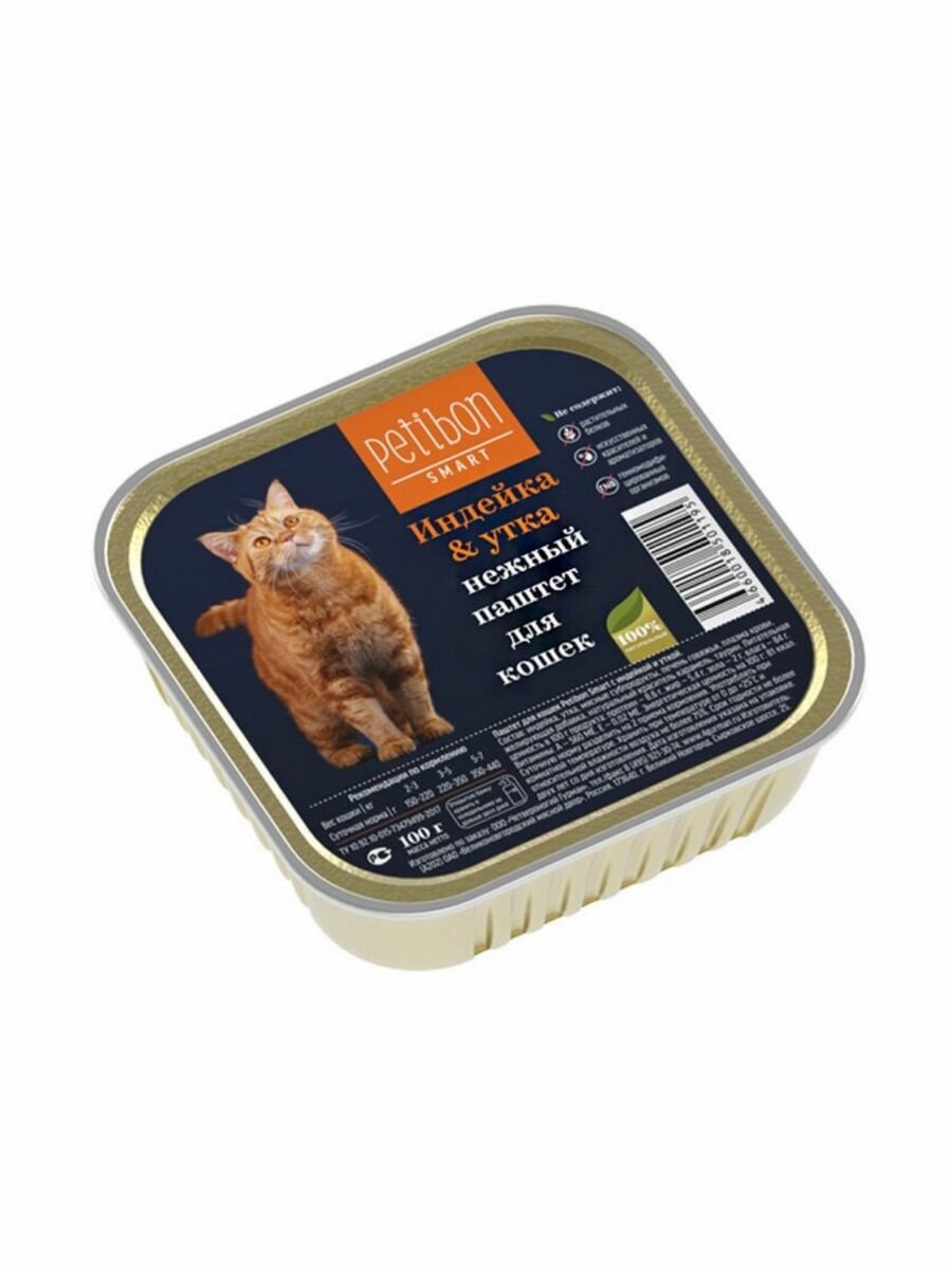 Корм консервированный PETIBON SMART для кошек паштет с индейкой и уткой, упаковка 24 шт (100 гр)