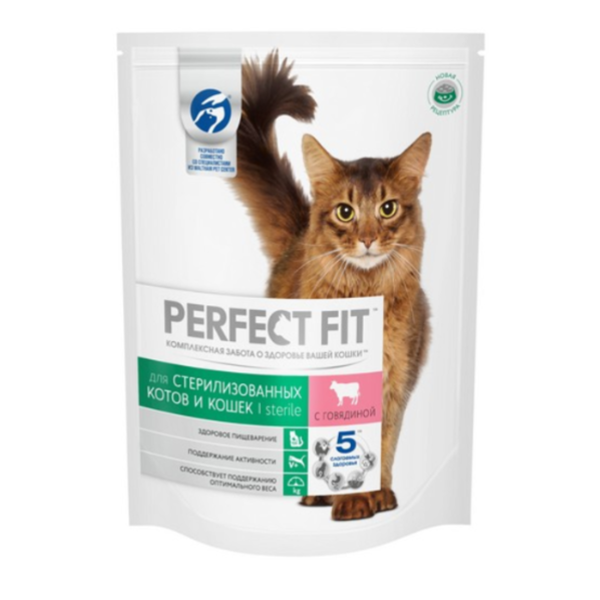 Влажный корм Perfect Fit для стерилизованных кошек, говядина, пауч, 75 г