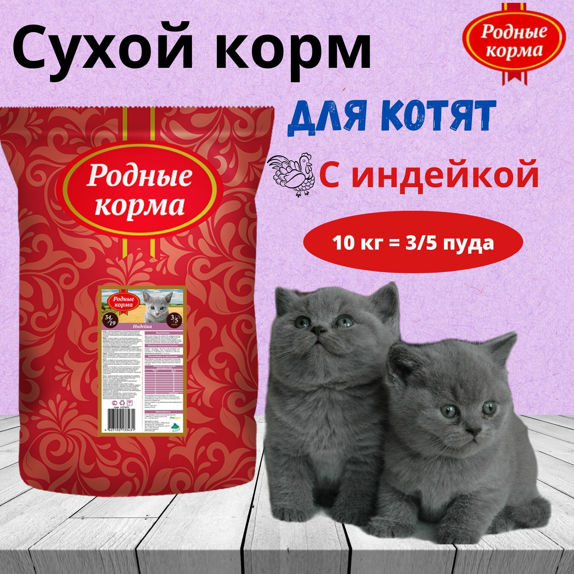 Сухой корм для котят Родные Корма, с индейкой, 10 кг