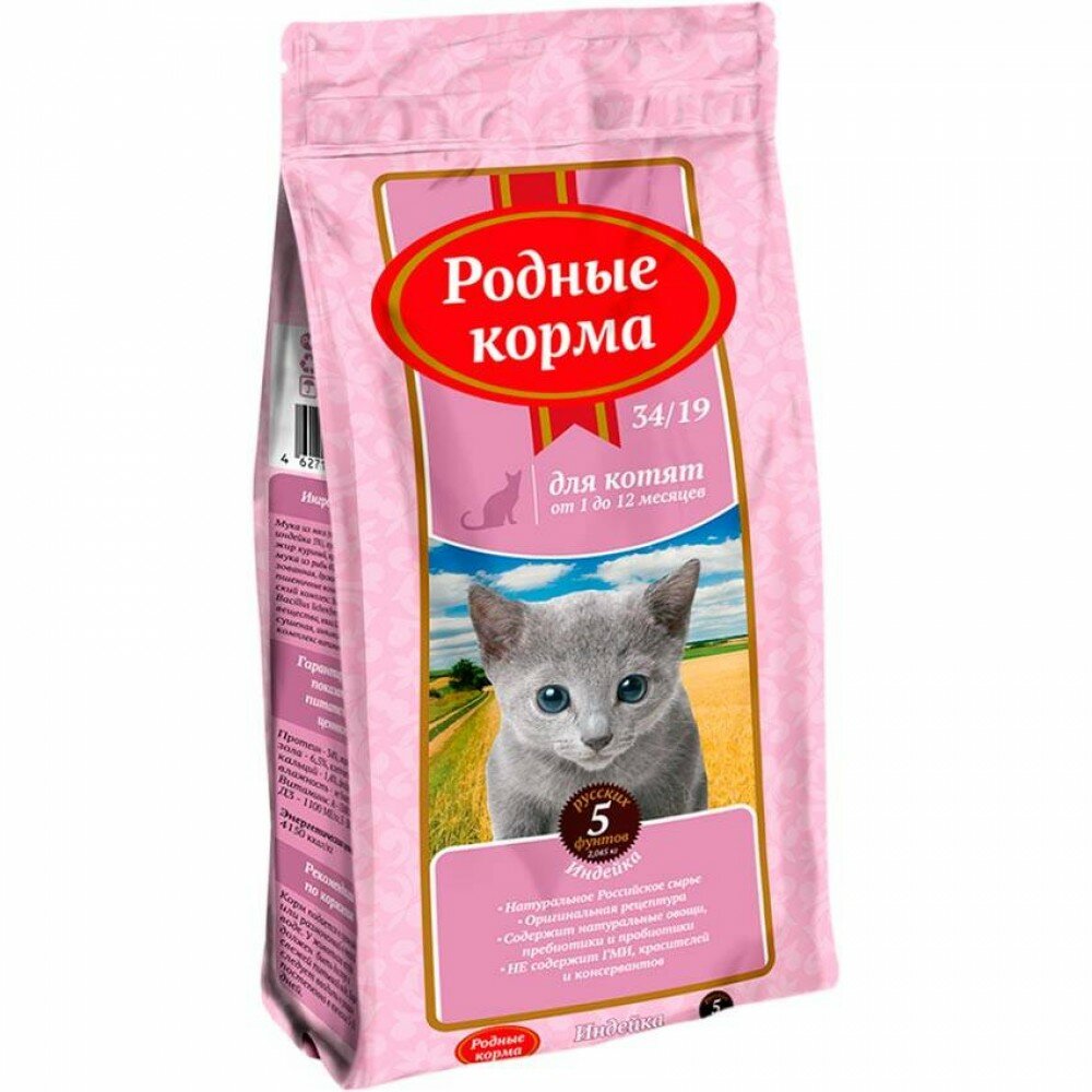Корм сухой родные корма 34/19 5 русских фунтов для котят, с индейкой 2,045 кг