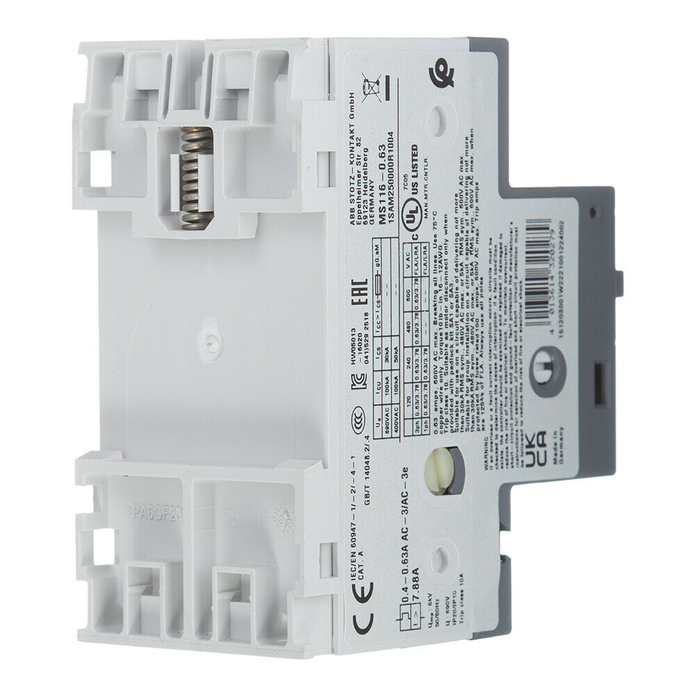 Автоматический выключатель защиты двигателя ABB MS116-0.63 (1SAM250000R1004) 3P 0,63А 50 кА 690 В на DIN-рейку/монтажную плату