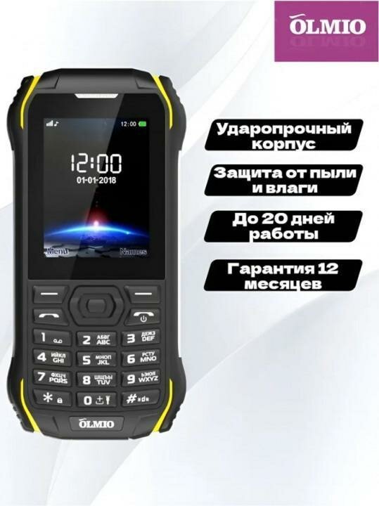 Защищенный мобильный телефон, Olmio, X05, Черный с желтым интересное: