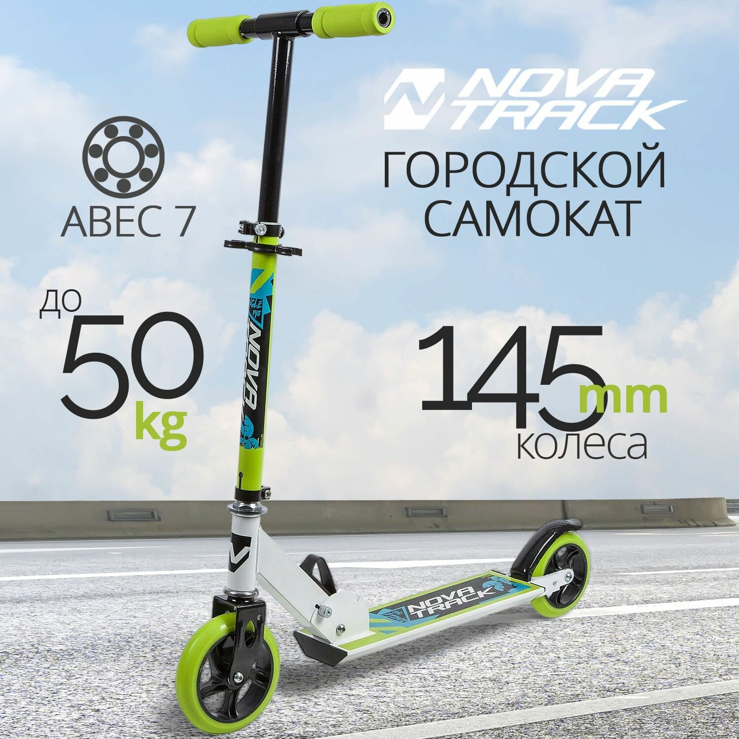 Купить Самокат 2-Х Колесный 145/125 Мм Городской Детский Jungle Стальной Складной 50 Кг Бело-Зеленый Novatrack 145S.jungle.wgn9 NOVA...
