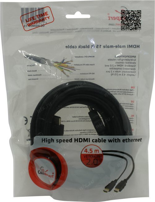 СохранитьКабель HDMI Cablexpert , 4.5м, v2.0, 19M/19M, черный, позол.разъемы, экран, пакет интересное: