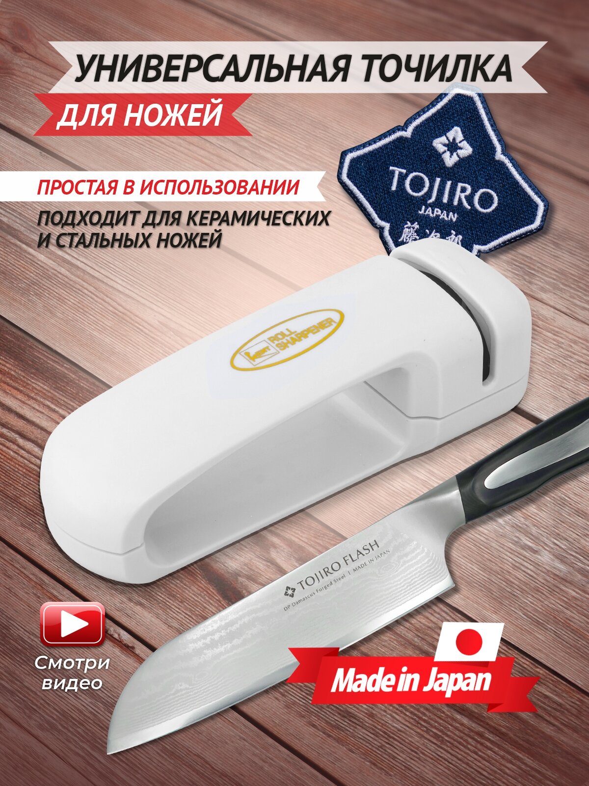 точилку покупал специально под ножи тоджиро. сами ножи конечно долговечные, но иногда требуется все же заточить. примечательно что не корябает лезвие а именно его затачиивает. времени уходит пару секунд. точилка понравилась.