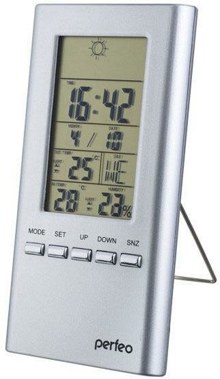 Метеостанция Perfeo PF-S3331F "Meteo", серебряный, время, темп., датчик ул. темп., влажность
