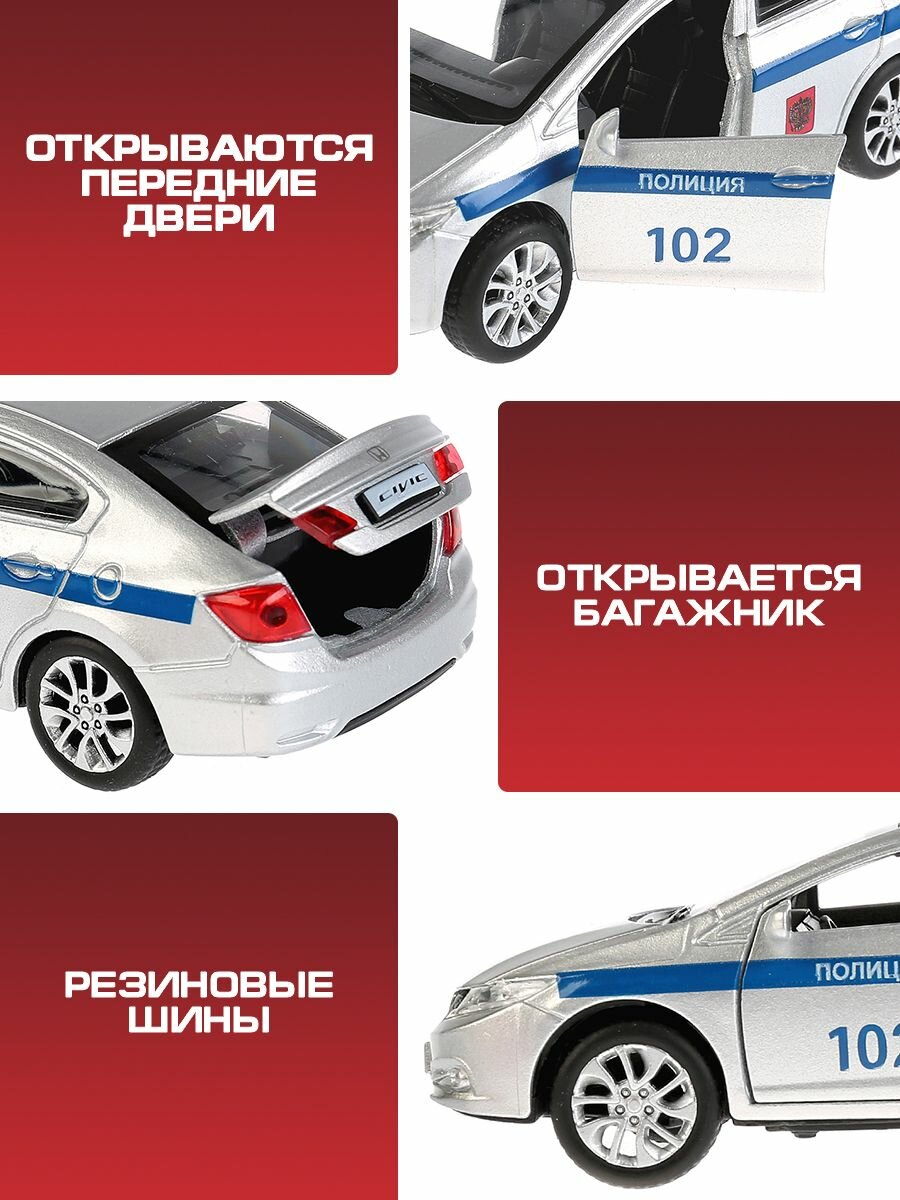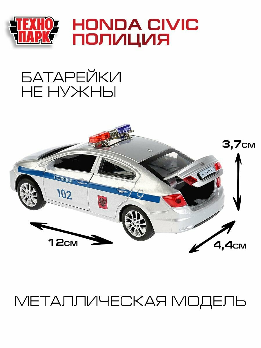 Машина инерционная Технопарк металлическая, Honda Civic Полиция, 12 см, открываются двери (CIVIC-P)
