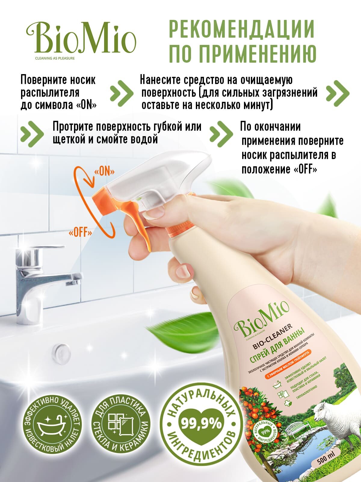 BioMio Чистящее средство BioMio "Грейпфрут", спрей, для ванной комнаты, 500 мл