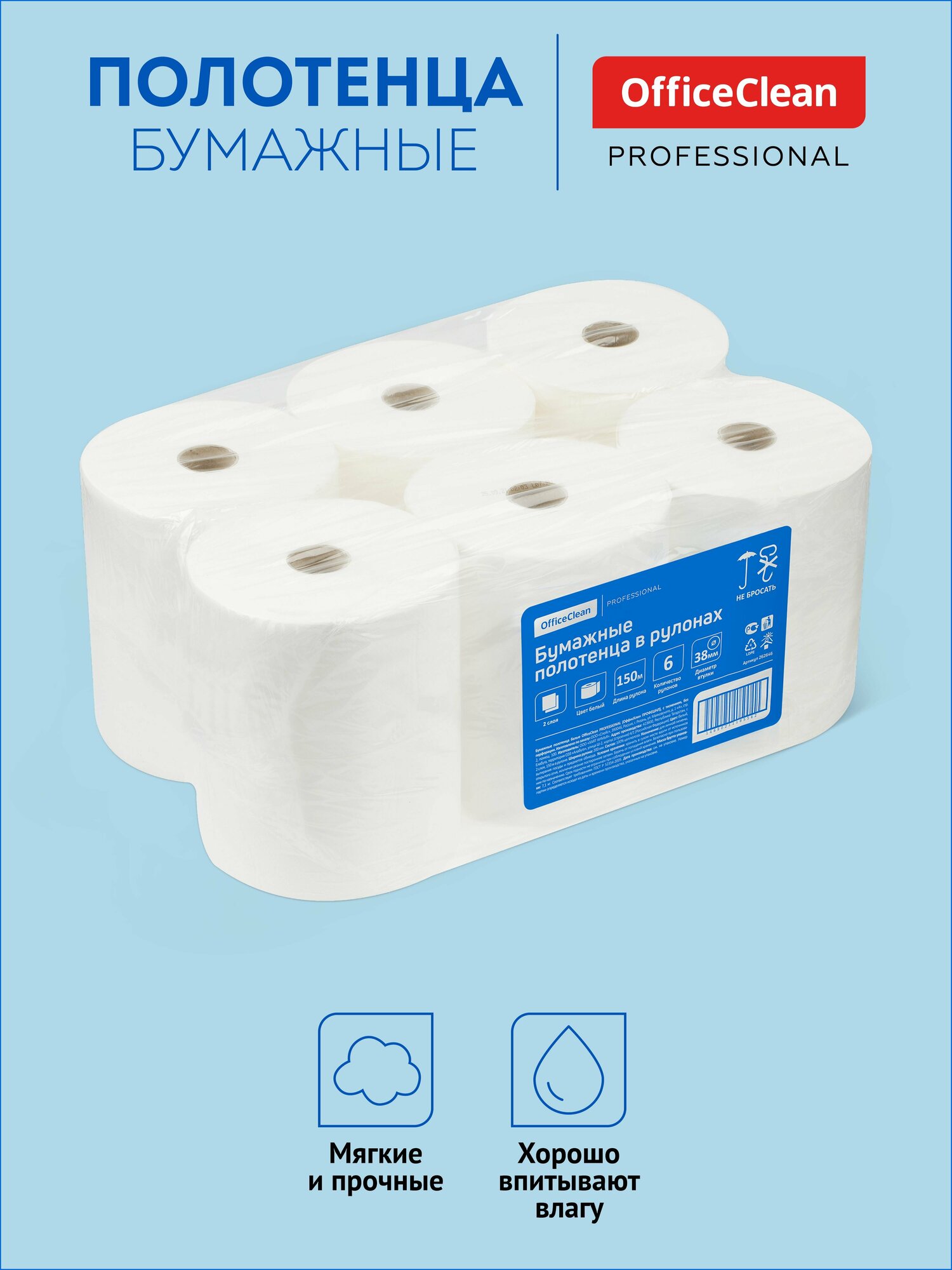 Полотенца бумажные в рулонах OfficeClean (H1), 2-слойные, 150м/рул, белые, 6 шт.