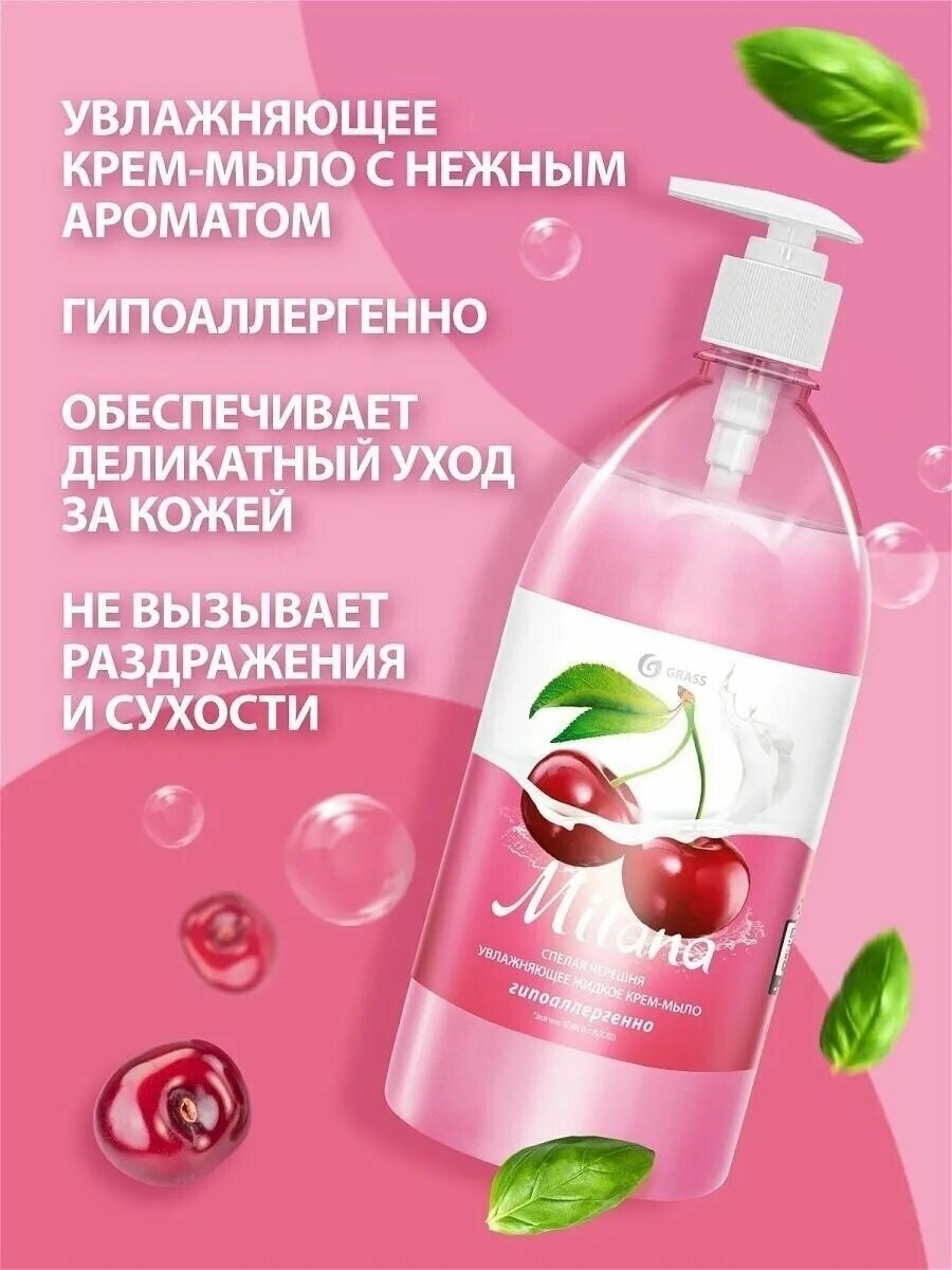 Жидкое крем-мыло MILANA спелая черешня увлажняющее с дозатором флакон 1л GRASS 126401