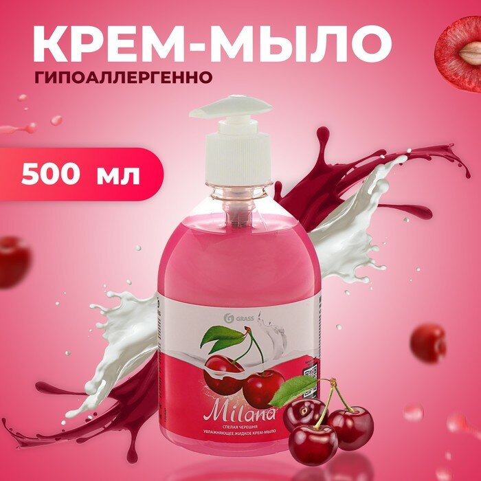 Жидкое крем-мыло MILANA спелая черешня увлажняющее с дозатором флакон 500 мл GRASS 126400