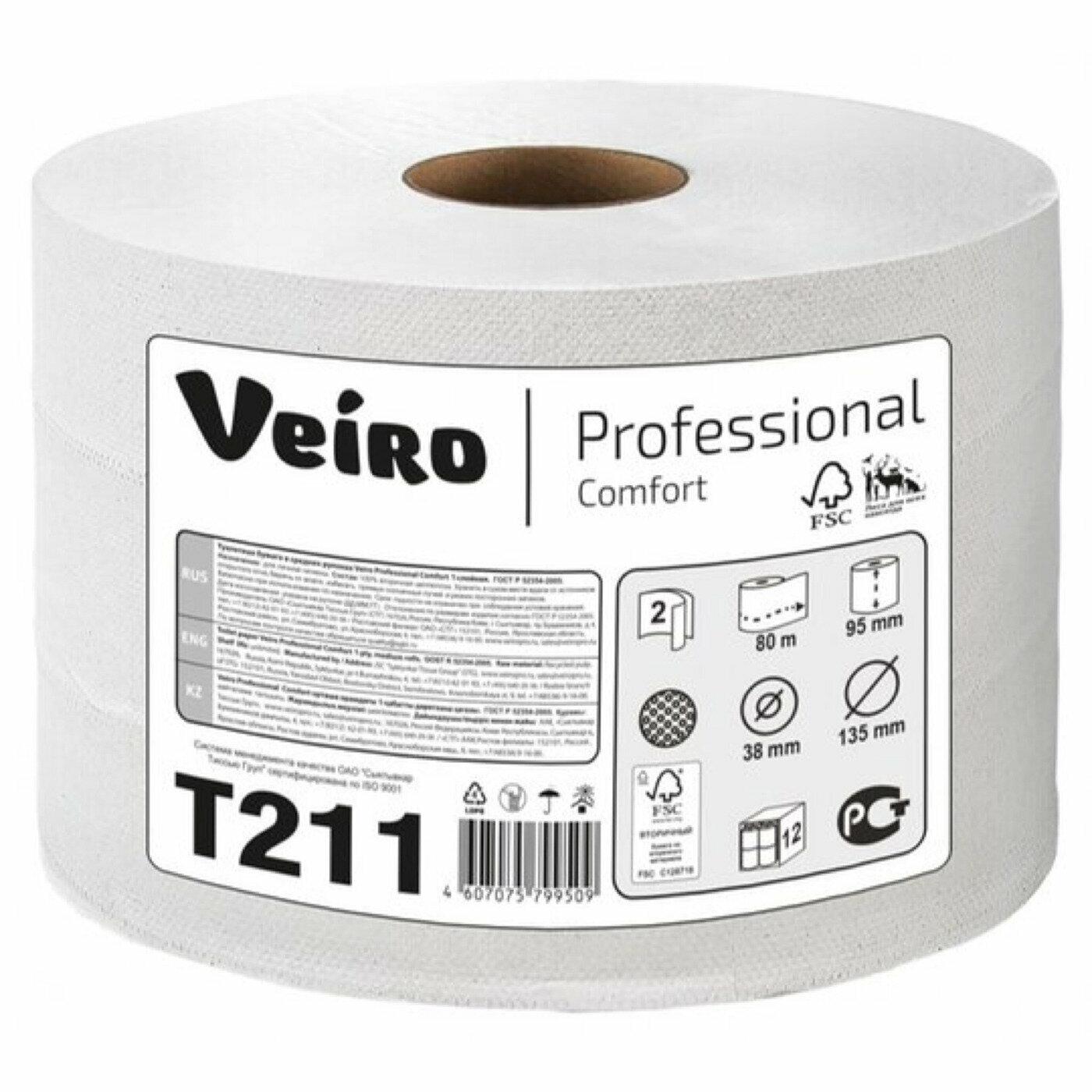 T211 Туалетная бумага в стандартных рулонах Veiro Professional Comfort двухслойная (12 рул х 80 м)