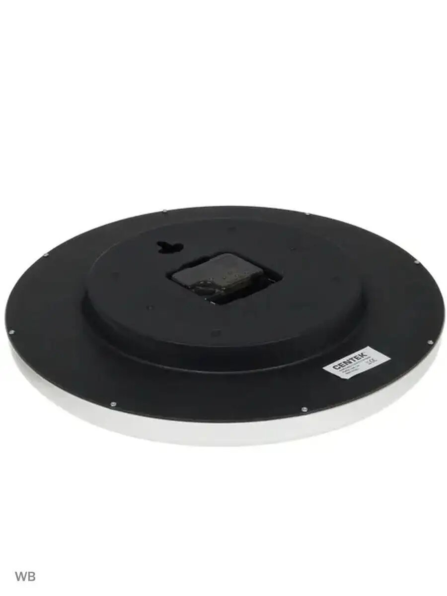 Часы настенные Centek СТ-7100 Black черн + хром 30 см диам., круг, плавный ХОД, кварц. механизм