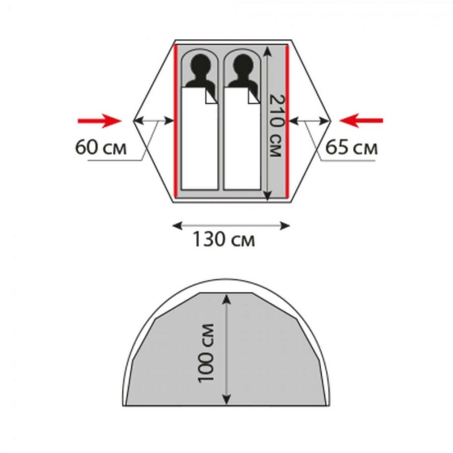 Обратите внимание, палатка от трамп бывает двух вариантов - с внутренним размером палатки125х210 и 130х200 |