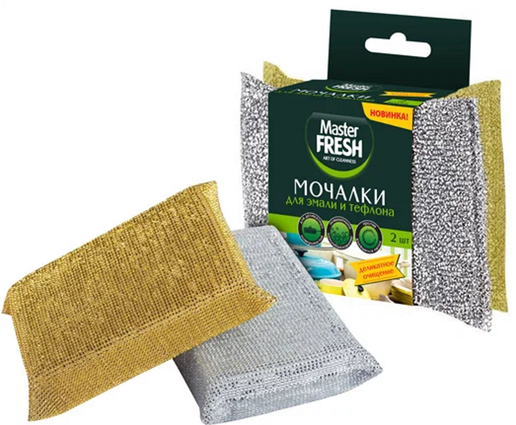 Мочалки для посуды Master Fresh для эмали и тефлона, серебристый/золотистый, 2 шт.