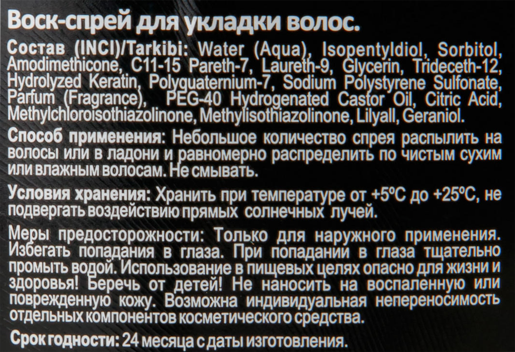 Воск-спрей для укладки волос 160 мл