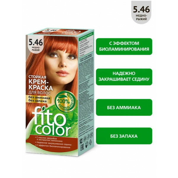 Купить Fito Косметик Стойкая крем-краска для волос серии Fitocolor, тон 5.46, Медно-Рыжий, 115 мл