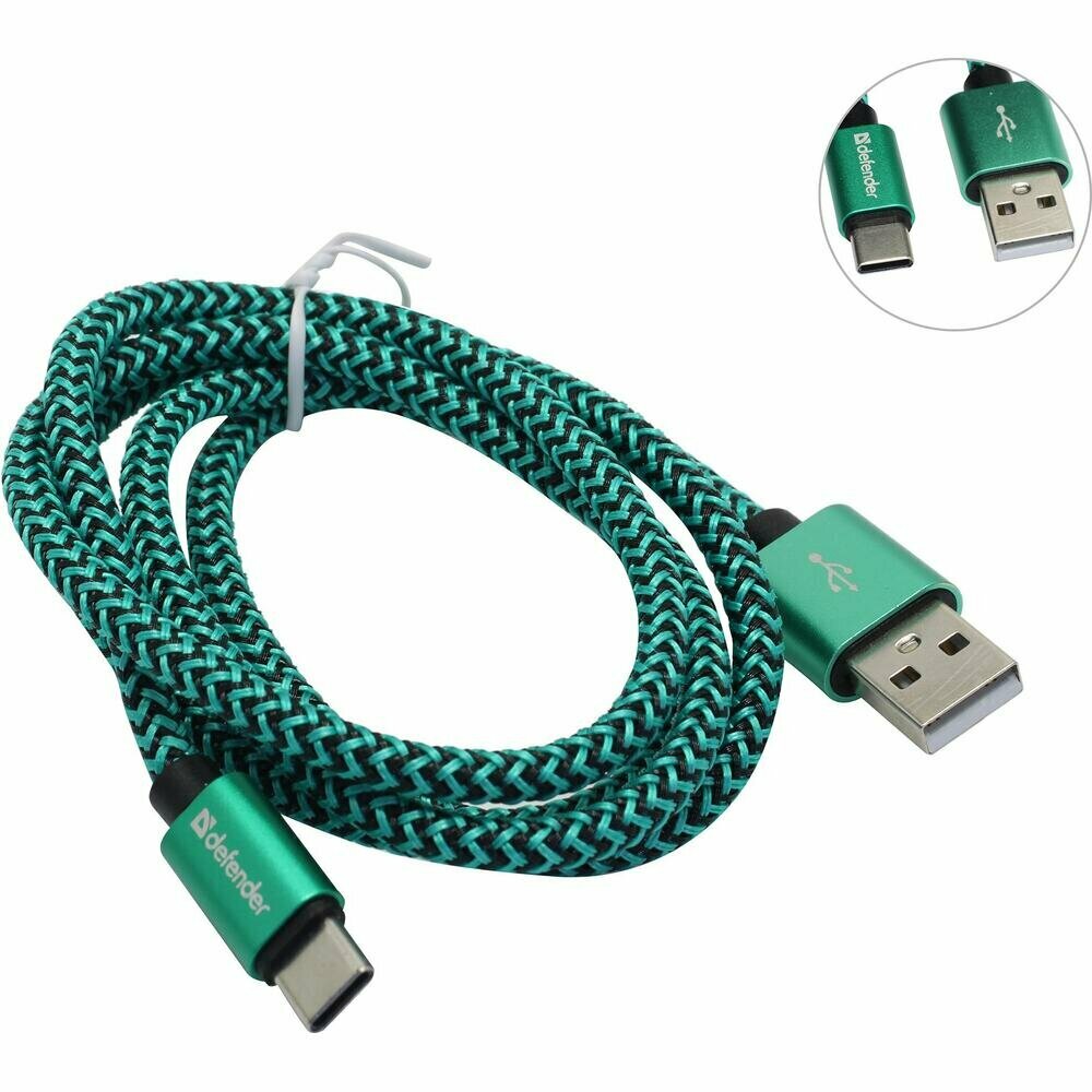 Defender (87816) Кабель USB2.0 Am--)usb-c M 1м, Green