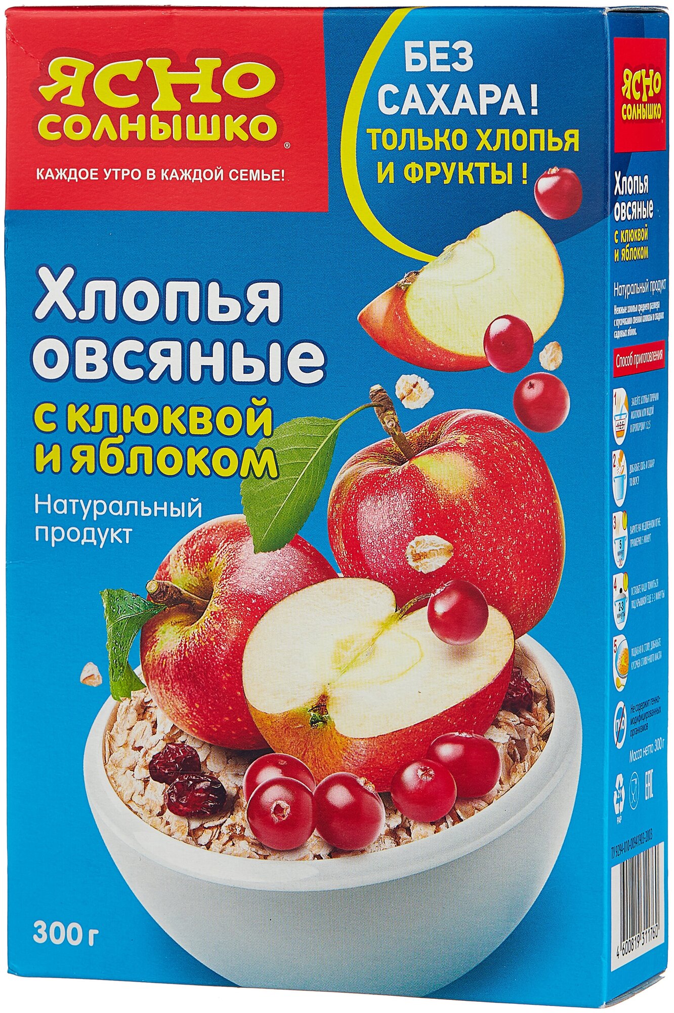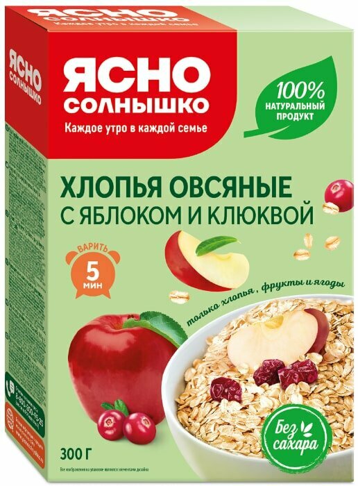 Ясно Солнышко Хлопья овсяные c клюквой и яблоком, 300 г интересное: