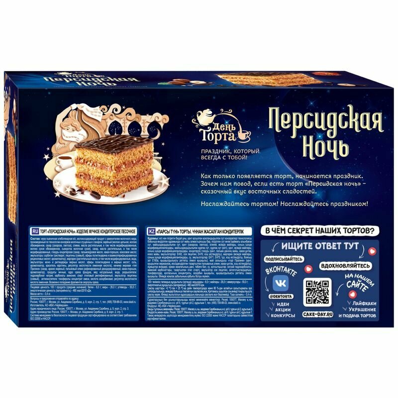 Ниже Вы можете прочитать отзывы на Торт "Персидская Ночь" 400г, ознакомится с подробными характеристиками, посмотреть интересные обзоры и фотографии на Торт "Персидская Ночь" 400г.