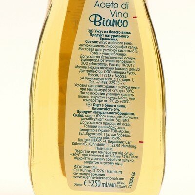 Уксус KUHNE Aceto di vino bianco 6% Винный белый, 250мл интересное: