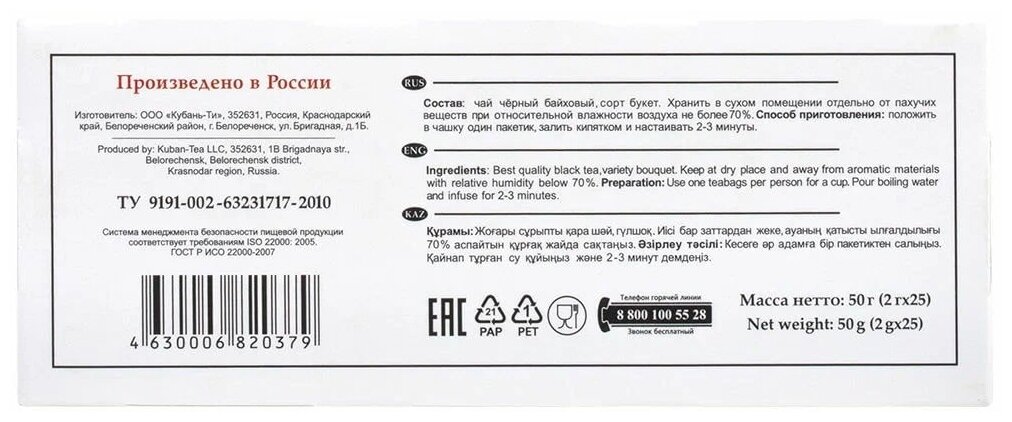 СохранитьЧай Азерчай черный букет (2г x 25шт), 50г интересное: