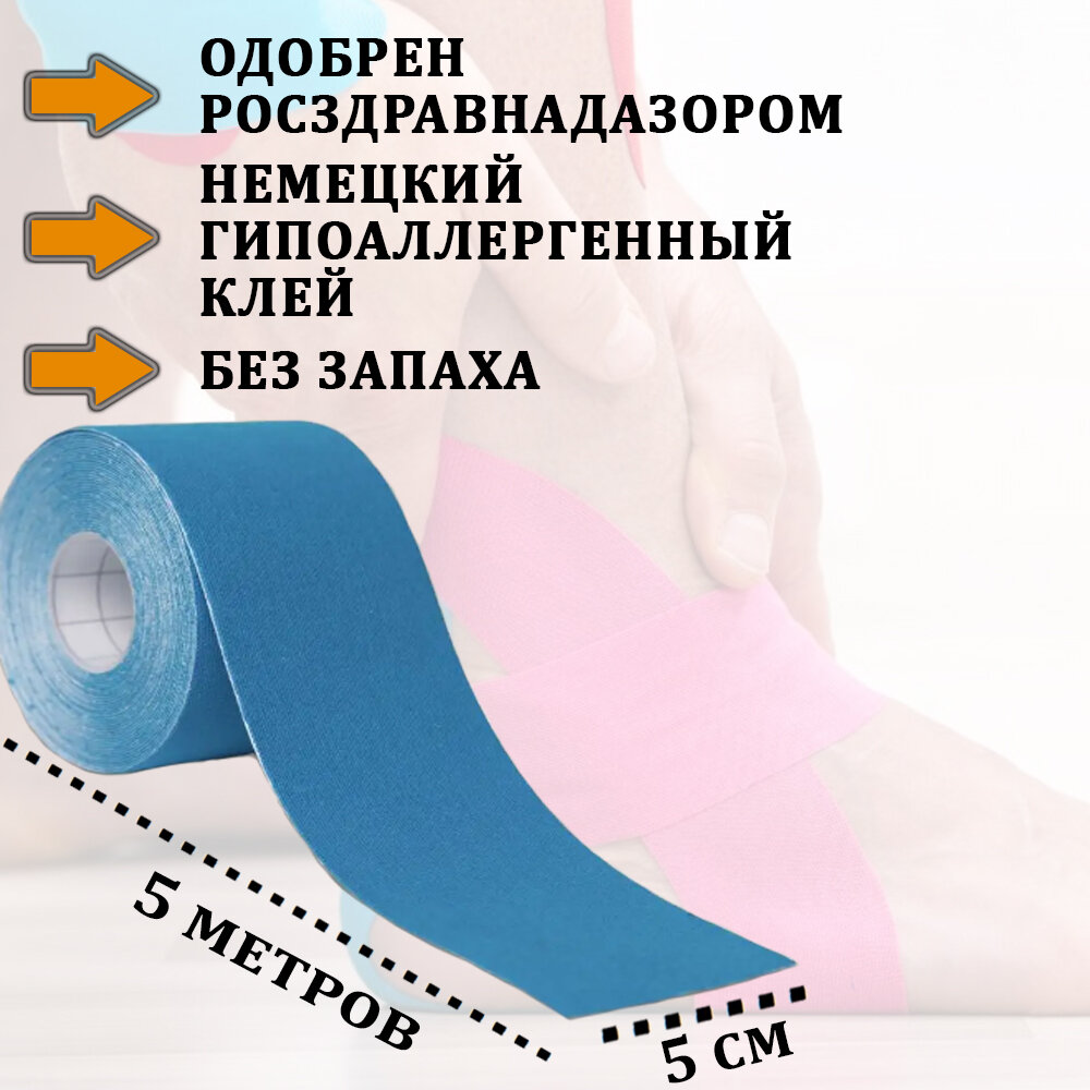 ЯБудуЖить100Лет Кинезио Тейп Бинт Синий 5см х 5м