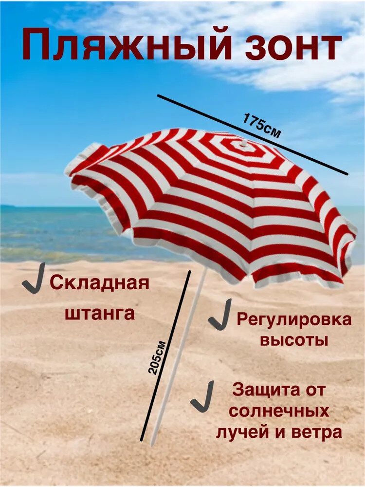 Зонт пляжный Ecos BU-68 D=175 см складная штанга 205 см