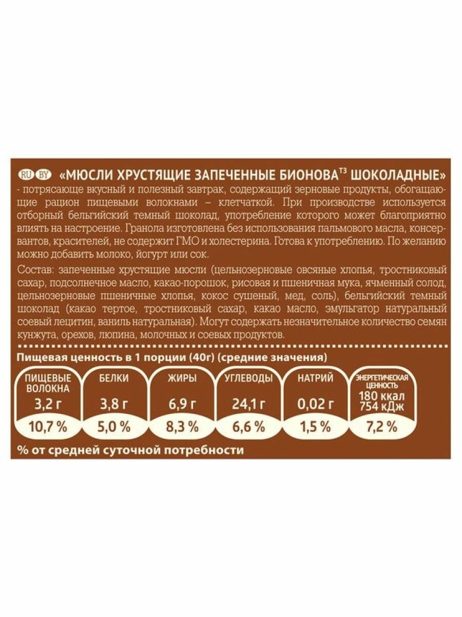 Мюсли запеченные бионова 400 г шоколадная